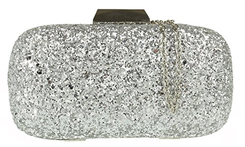 Luxury hard case clutch bag with sparkly effect Interior fully lined Comes with a detachable shoulder chain strap
