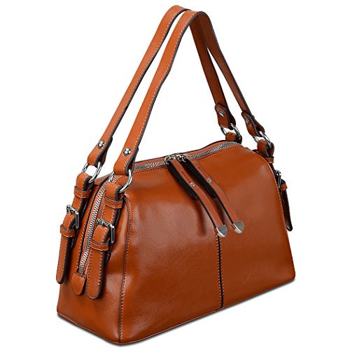 Material: Laminated Leather with SGS Certified SGS, registered in Geneva, is the world's leading inspection, verification, testing and certification company, which is the only verification amazon acknowledges. Cow Split leather is often coated to be various colors and pattern. It is moderate genuine leather, soft and anti-scratch. To create a vintage and noble look, the leather is often polished and oiled, which makes the surface shinier and sleeker. The more you use, the more retrospective it will be. It may have natural odor at first, but the smell will disappear after a couple days' airing out. Package Includes: 1x Women's Handbag 1x Removal and Adjustable Shoulder Strap